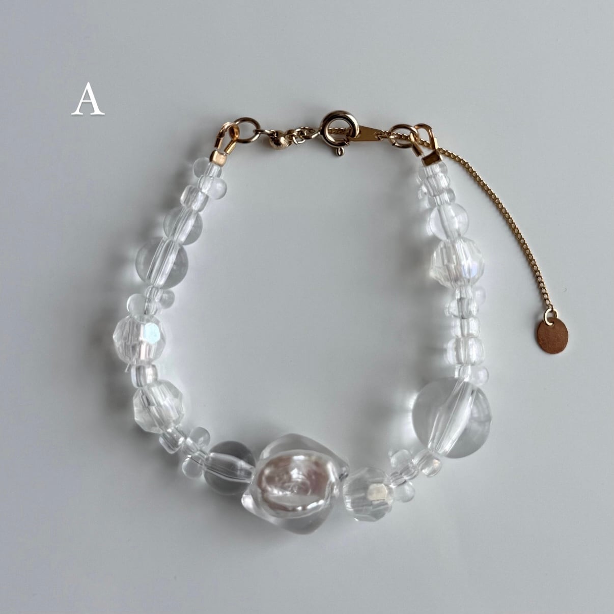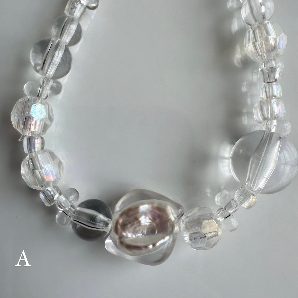 デザインもサイズも様々なビーズをランダムに配置して、フリーハンドで製作した1点物のmelt pearl達と組み合わせております