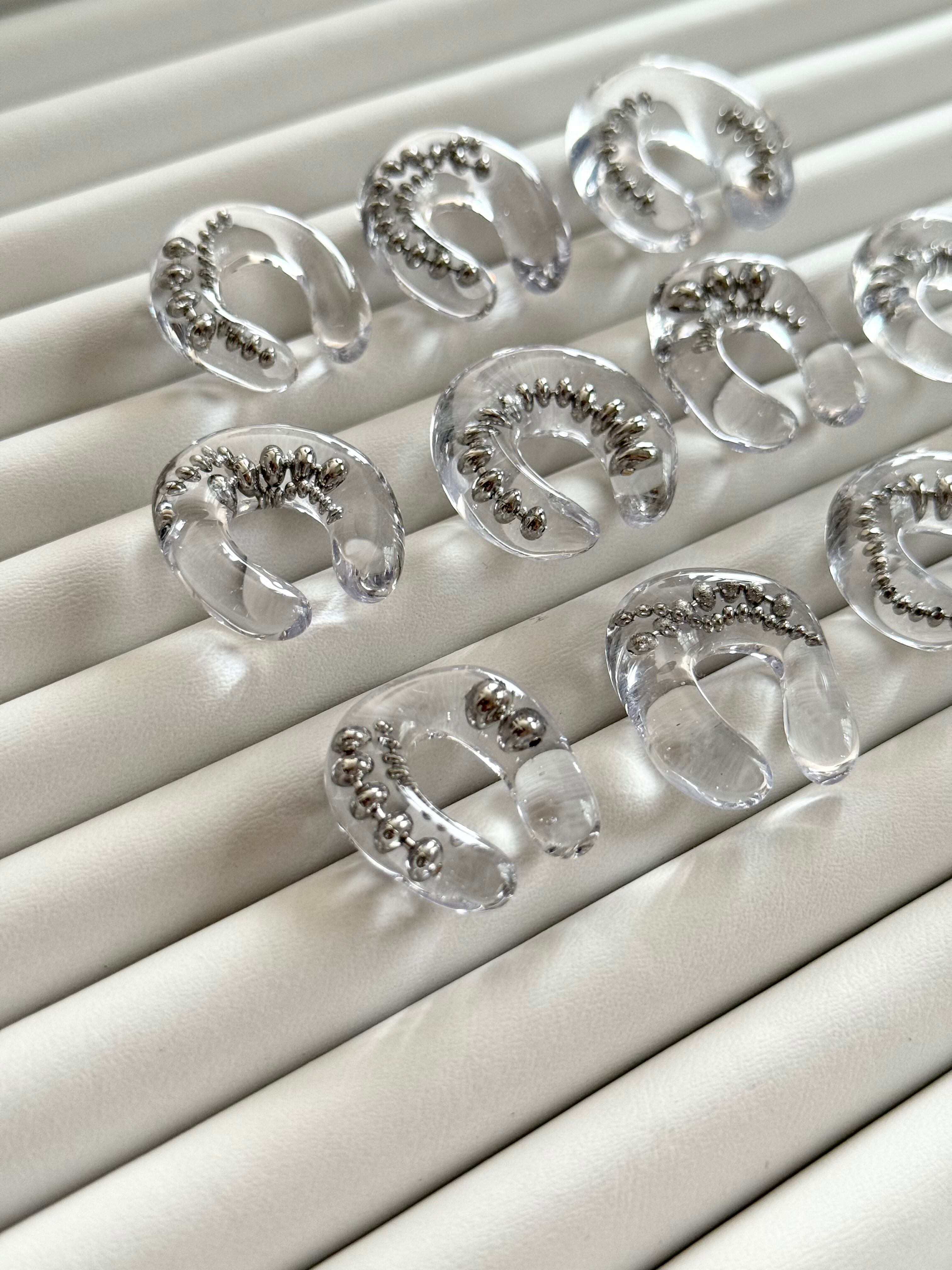 樹脂を型どらずにフリーハンドで作りながら形を決めるear cuff