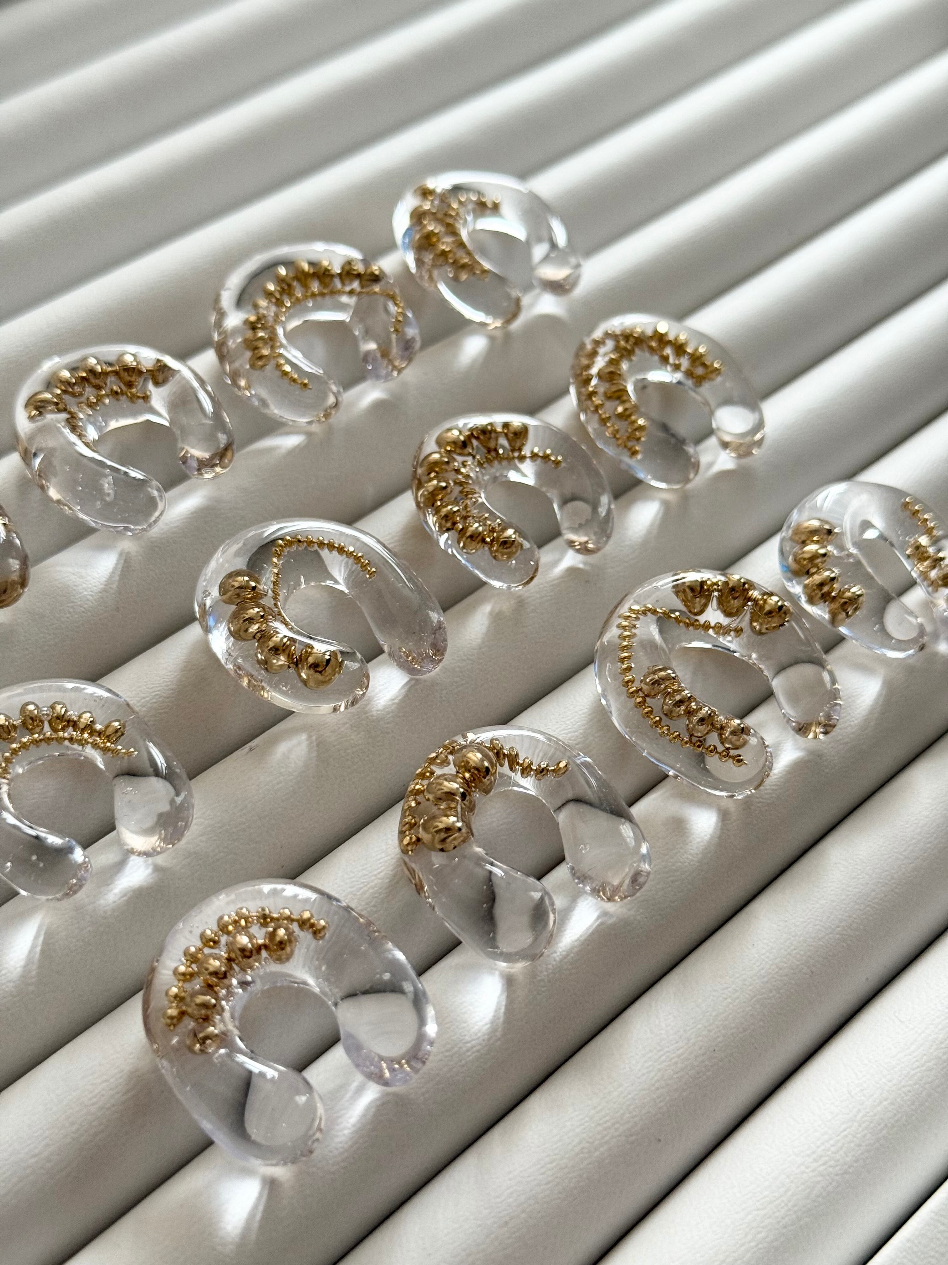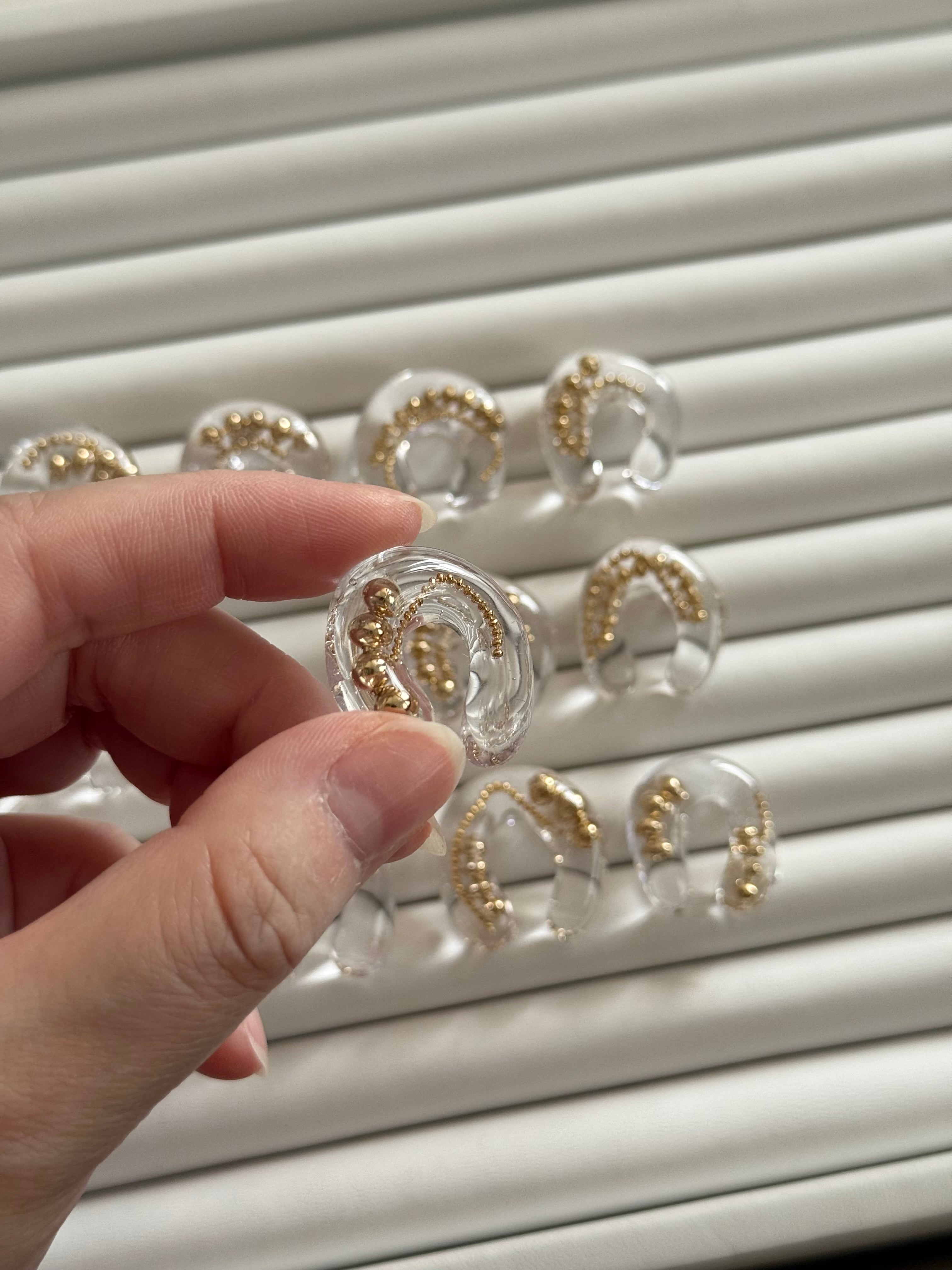 樹脂を型どらずにフリーハンドで作りながら形を決めるear cuff