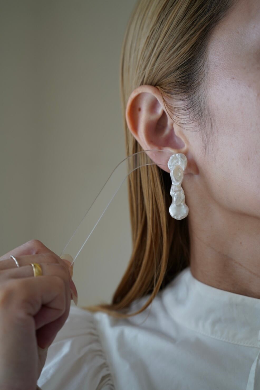 1粒1粒形も色も異なるパールを使用し製作していくami