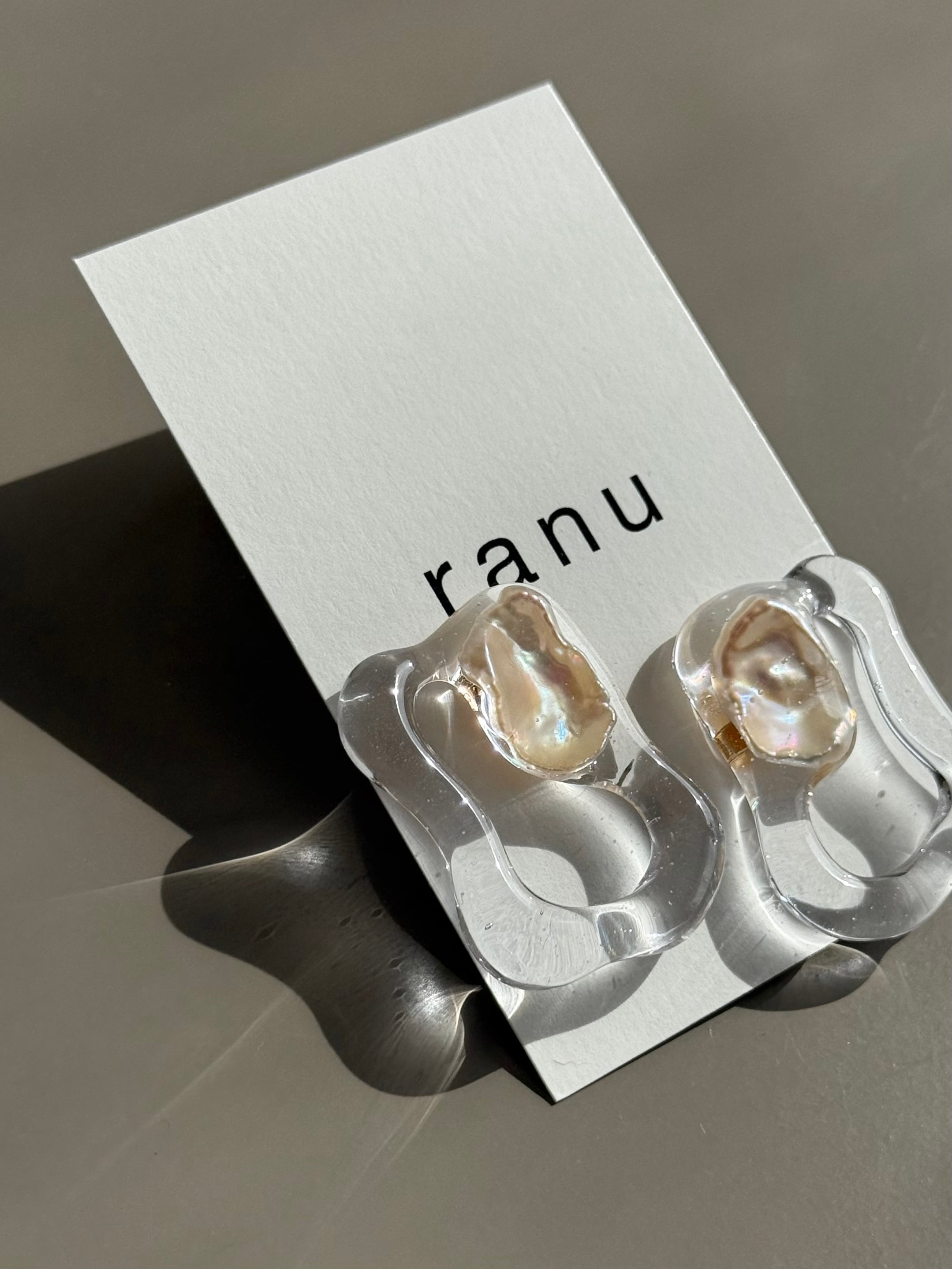 全て違う形に育った1点ものの淡水パールを使用して、型取りはせずに1点1点フリーハンドで形や大きさをを作っている1点物のアイテムです