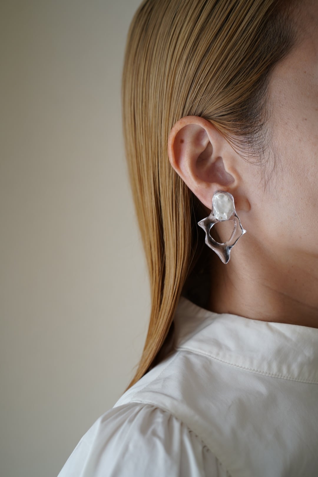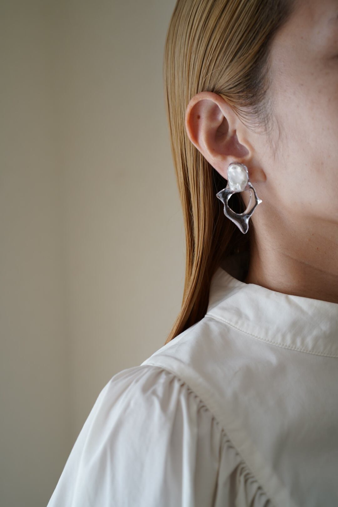 全て違う形に育った1点ものの淡水パールを使用して、型取りはせずに1点1点フリーハンドで形や大きさをを作っている1点物のアイテムです