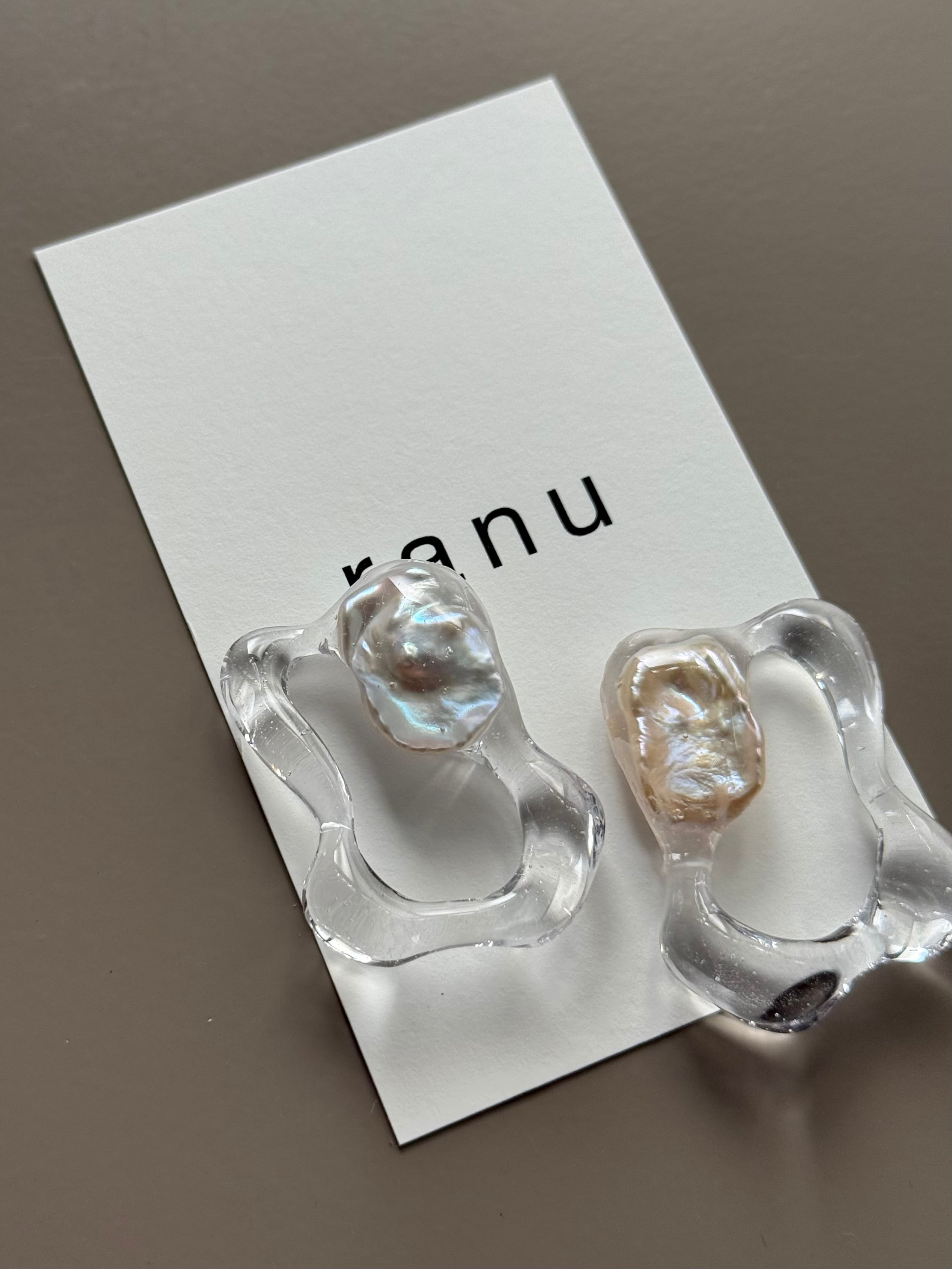 全て違う形に育った1点ものの淡水パールを使用して、型取りはせずに1点1点フリーハンドで形や大きさをを作っている1点物のアイテムです