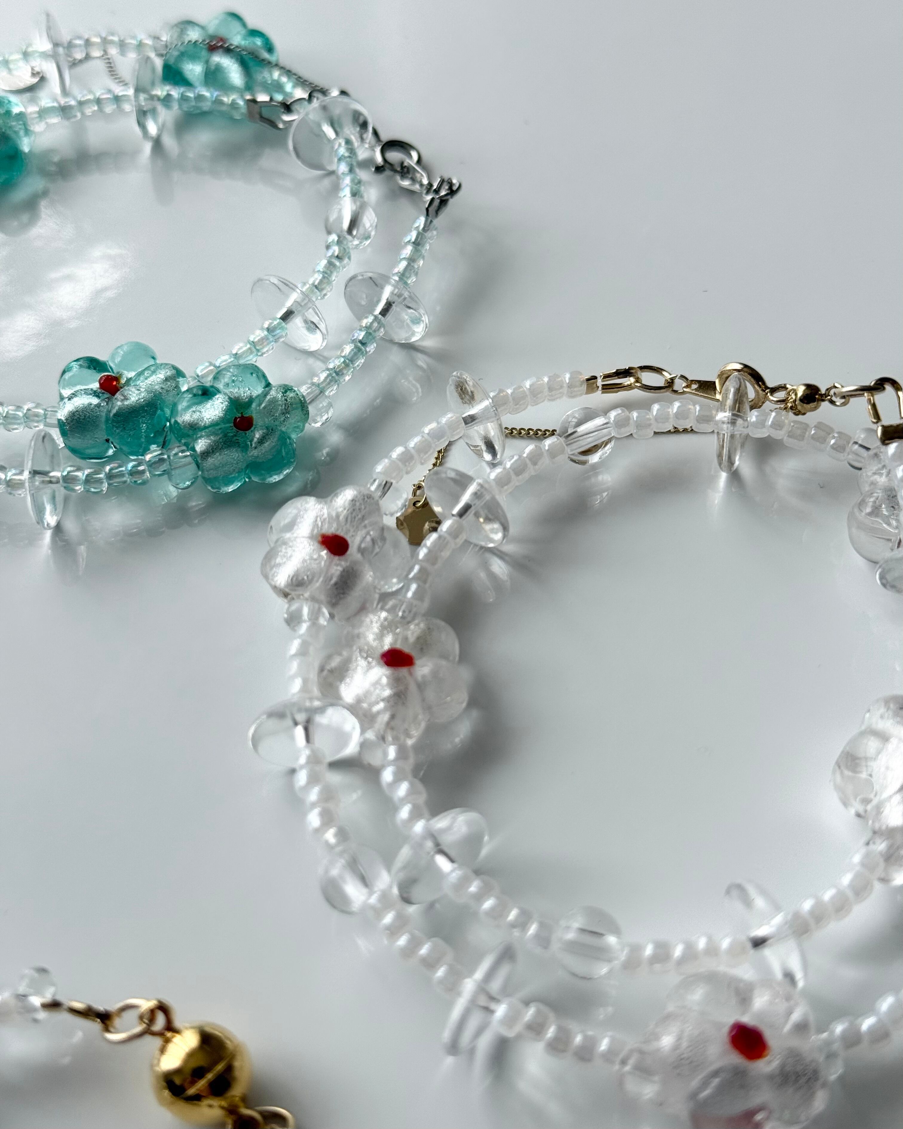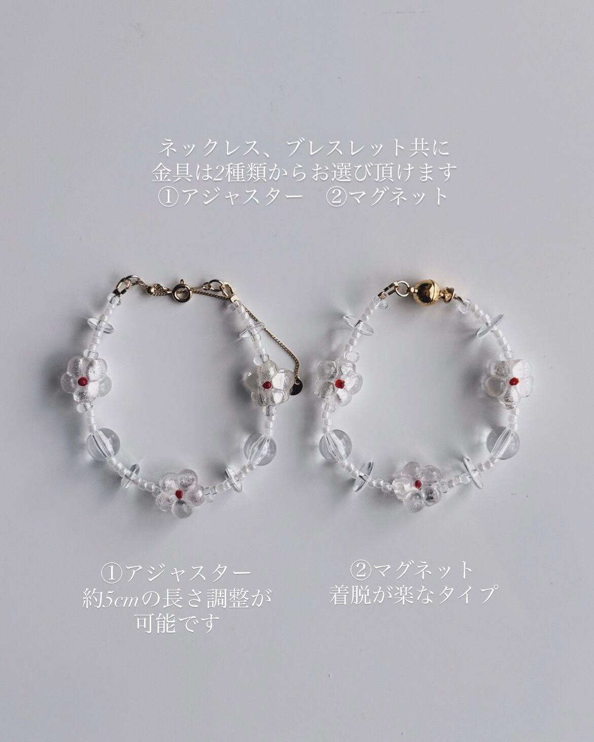 ホワイトのお花は金具がgold、silverからお選びいただけます