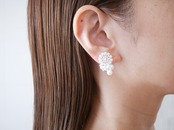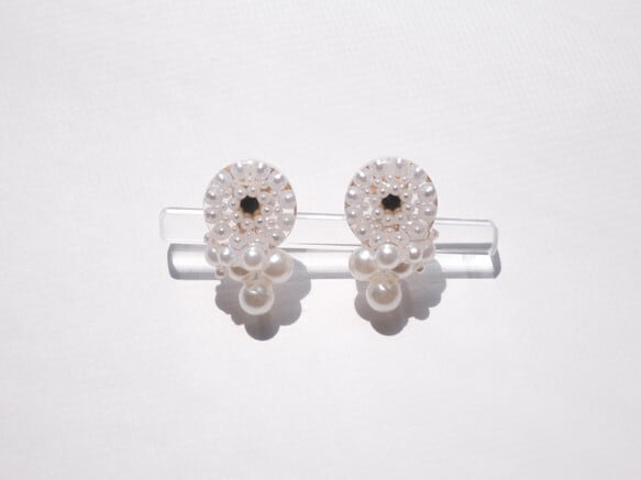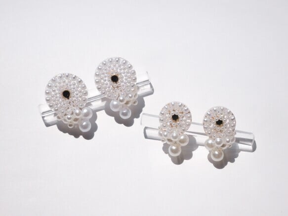 丸の中に閉じ込めた規則的なレース模様の下に溢れる泡を表現し、イヤアイテムにしました
